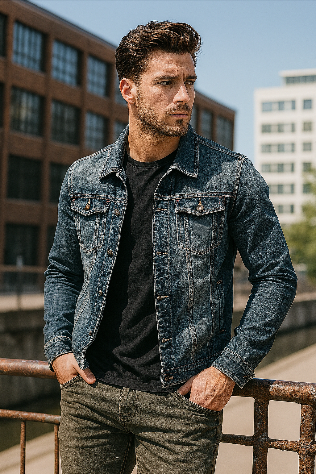 La giacca GENOVA nasce dall’autentica tradizione del denim: è realizzata in denim premium con una composizione di riferimento pari al 75% di cotone naturale, selezionato per garantire morbidezza, resistenza e comfort.