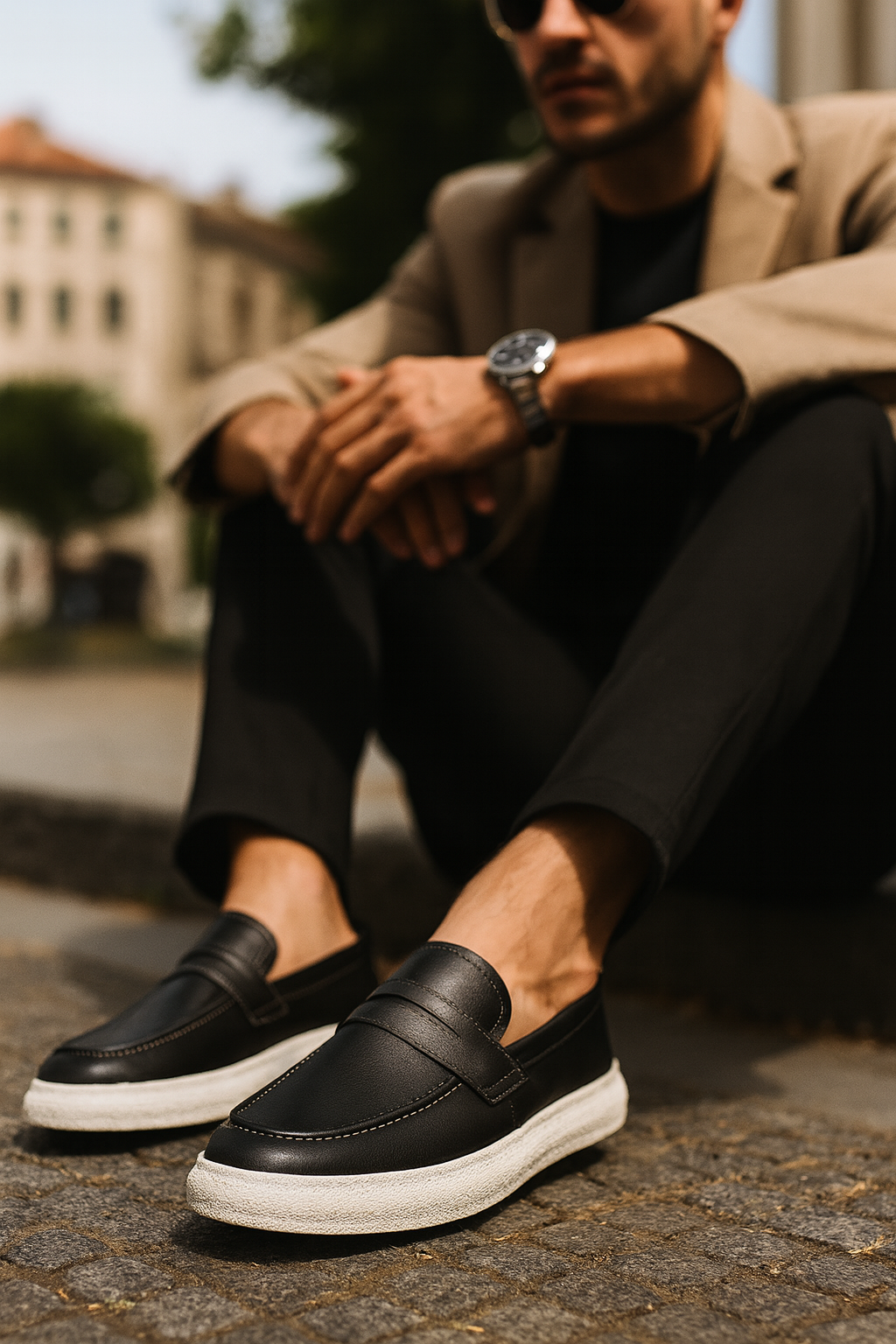 Passi ore fuori casa e le tue scarpe ti fanno solo desiderare di toglierle? Con Conti Montenapoleone questo non succede più: sono i primi mocassini in vera pelle pieno fiore con suola da sneaker, creati per offrirti stile impeccabile e comfort totale dall’alba alla notte. Non tornerai più indietro: prova l’eleganza che cambia il tuo passo.