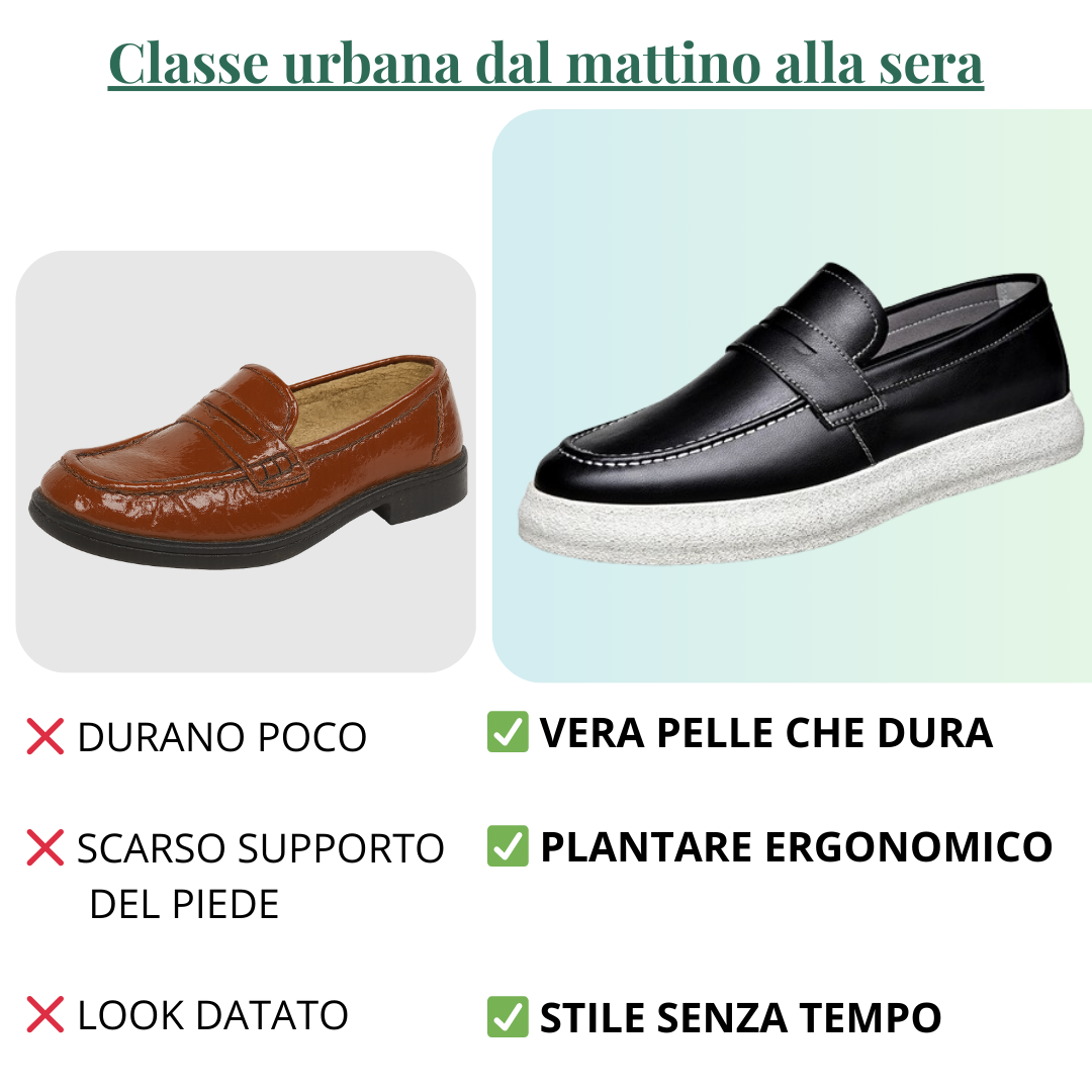 Non sprecare altri soldi con mocassini economici che si consumano in fretta e sacrificano il tuo comfort. Con i Mocassini Montenapoleone scegli vera pelle, plantare ergonomico rialzato e design moderno che unisce eleganza e praticità. Ogni passo diventa più leggero, ogni giornata più confortevole. È la differenza che senti subito, e che dura nel tempo.