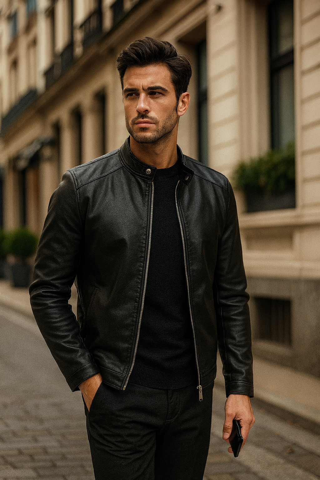 Assolutamente sì. Il taglio pulito e le zip metalliche la rendono perfetta sia con jeans che con pantaloni sartoriali.