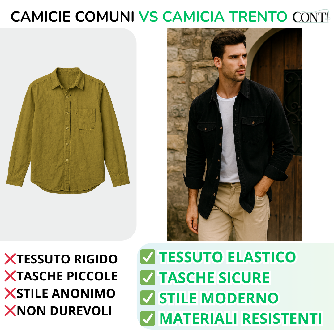 La differenza è evidente: mentre le camicie comuni sono rigide, anonime e poco resistenti, la Camicia Trento ti offre libertà di movimento, materiali robusti e uno stile moderno che dura nel tempo. Non è un capo qualunque, ma una scelta consapevole per chi vuole distinguersi ogni giorno.